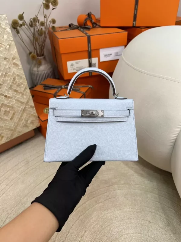 🔍Canada Toronto Hermes Mini Kelly 19CM Epsom Leather T0 Blue Brume Silver Hardware
