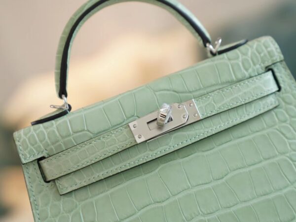 🔍Hand Stitching Hermes Mini Kelly 19CM 6U Vert D’eau Matte Alligator Silver Hardware