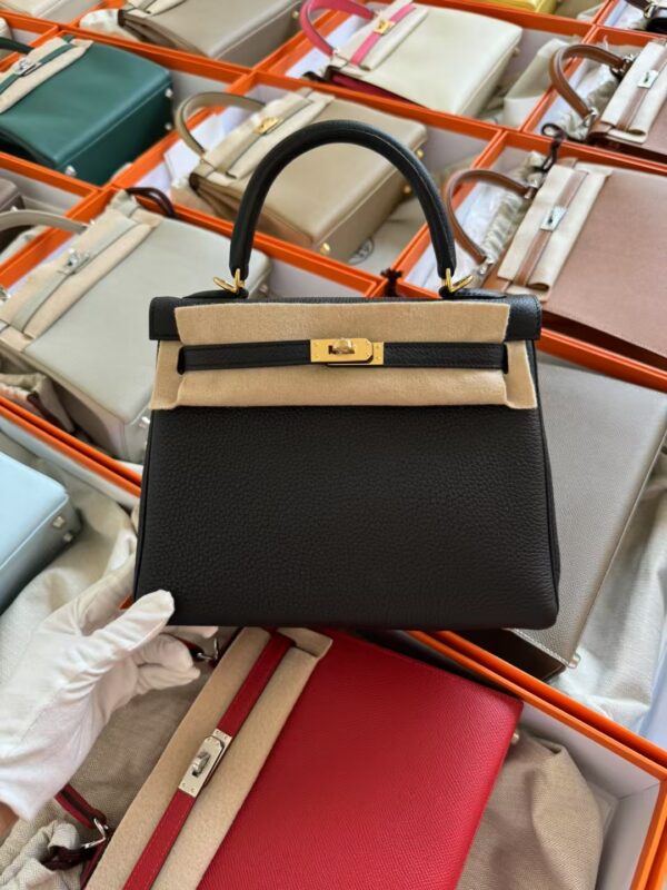 🔍Hermes Kelly 25 Bag Images CC89 Noir Togo Leather Gold Hardware
